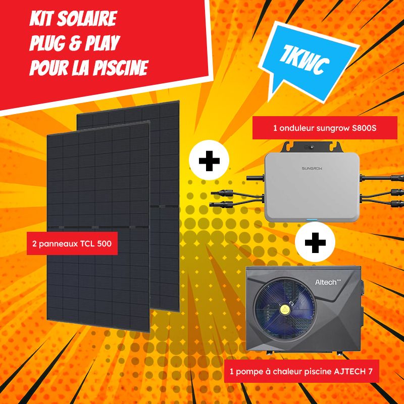 Kit Solaire Plug & Play La Piscine 1 kWc - 2 Panneaux 500 Wc + 1 PAC piscine AJTECH + 1 micro-onduleur Sungrow