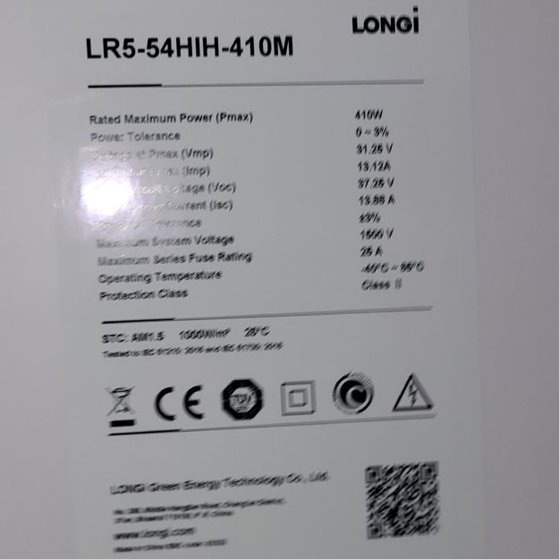 LOT DE 5 PANNEAUX LONGI 410 WATTS